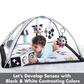 Let your little one explore the shapes on the soft black and white book or marvel at their own reflection in the mirror while practicing tummy time. The spacious and cozy play area let’s babies stretch and experiment with movement and roll over. The playmat's variety of textures, sounds and features provide ongoing auditory and tactile stimulation.