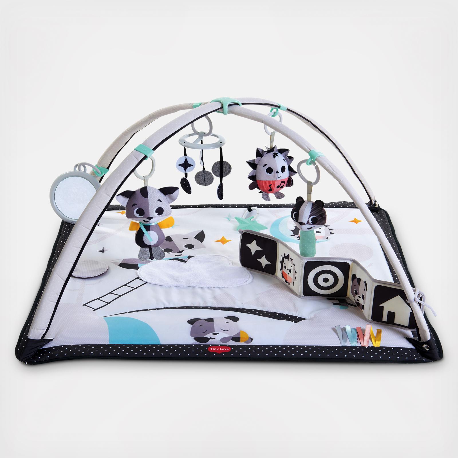 The Magical Tales™ Black & White Gymini is a stylish activity gym, designed especially to support newborn development. With 18 developmental activities and interactive toys, it encourages baby’s skills as they naturally play. Its contrasting black and white details provide visual stimulation for newborns from day one. The adjustable arches can be easily arranged in a variety of ways, or removed, to enhance your baby’s developmental environment for the ultimate tummy time experience.