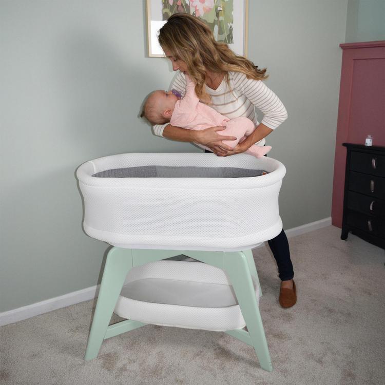 More than a standard close-to-the-bed sleeper, the TruBliss Evi Smart Bassinet boasts state of the art technology to help calm and put baby back to sleep. The Evi Smart Bassinet's unique motion, light, and sound features easily connect to Amazon Alexa, Google Home or through its mobile app for hands-free support when you need it most. Our Evi Smart Bassinet helps calm and put baby back to sleep. Yes, that’s right! Our bassinet is an infant bed featuring smart technology that communicates with smart home devices like Alexa and Google Home. Motion, lights and music all function with hands-free technology.