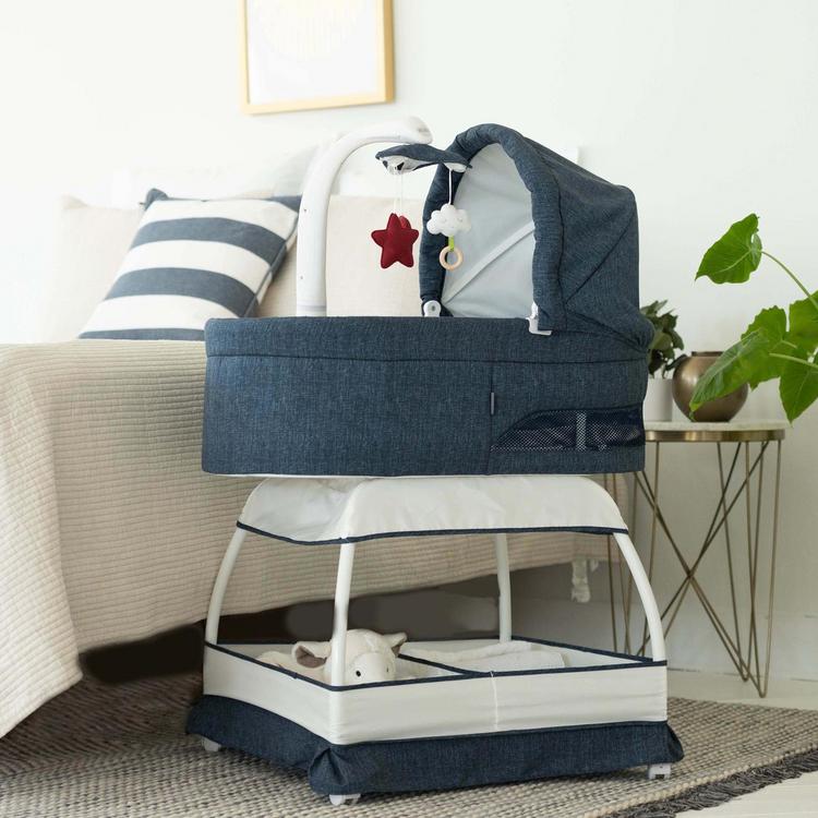 Rest assured knowing your precious little one has a safe space to sleep in the TruBliss™ Sweetli Nurture™ Bassinet, a convenient close-to-the-bed sleeper that boasts modern technology. The Play2Sleep mobile monitors the temperature and humidity in your baby's room and offers a feeding reminder that helps keep feeding time on schedule ensuring your baby is getting the proper amount of nutrients.