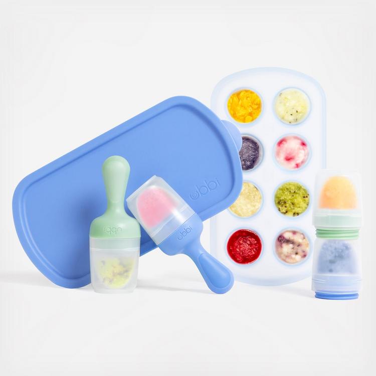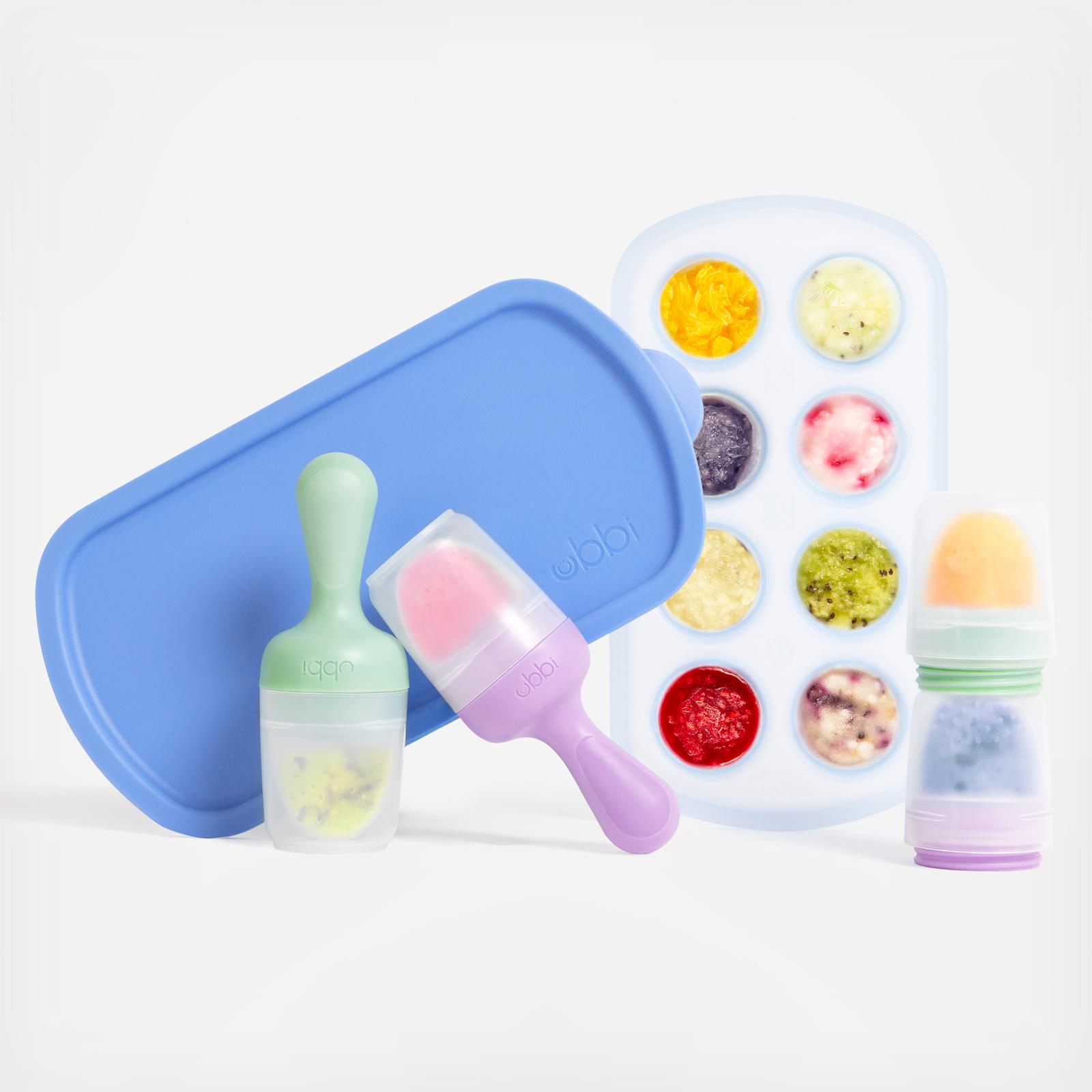 Make feeding time safer, easier, and more convenient with the Ubbi Freezer Tray and Baby Feeder Set a complete solution for introducing solids and soothing teething babies. This all-in-one set includes one food feeder, two secure pods, and a freezer tray with 8 perfectly portioned molds designed to fit directly into the Ubbi food feeder. Crafted from 100% food-grade silicone, the tray and feeder are soft, safe, and gentle on baby’s gums. The compact, space-saving tray makes batch prep a breeze, and its flexible silicone design allows for easy pop-out cubes, so you're always ready with a fresh snack or teething remedy. Whether you're freezing fruit purees, breast milk, or yogurt, this set supports your baby’s transition to solids while keeping your freezer organized. The feeder handle is easy for little hands to grip, encouraging self-feeding and independence, all while minimizing choking risk. Both the tray and feeder components are dishwasher safe and fully disassemble, making cleanup simple and sanitary for busy parents.