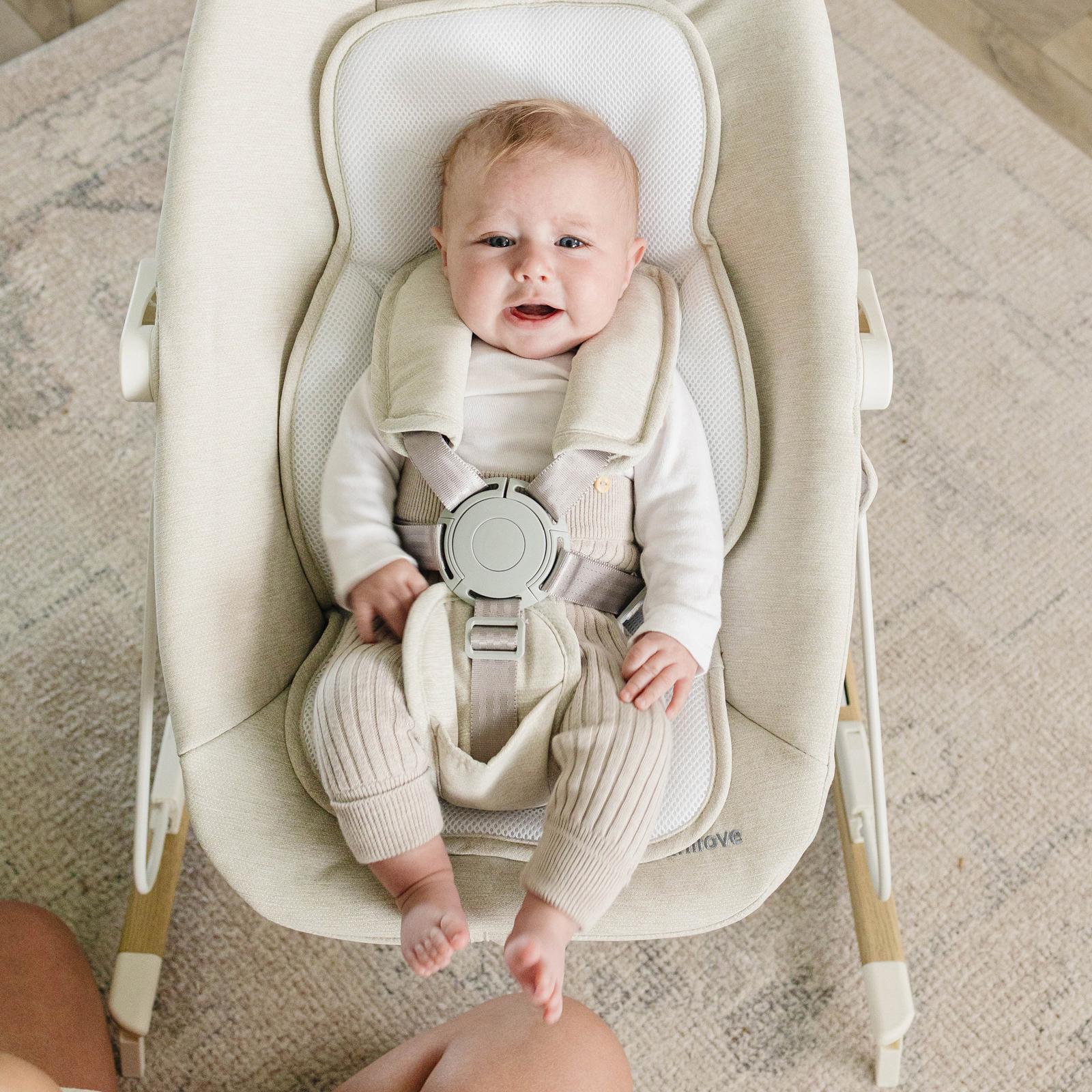 Give your baby a cozy place to relax with the AKUDO baby bouncer by UNILOVE. This portable infant bouncer seat doubles as a rocker, providing gentle rocking motion and secure support for newborns. Made from breathable, washable fabrics with a modern aesthetic, it’s lightweight and easy to move around the home.