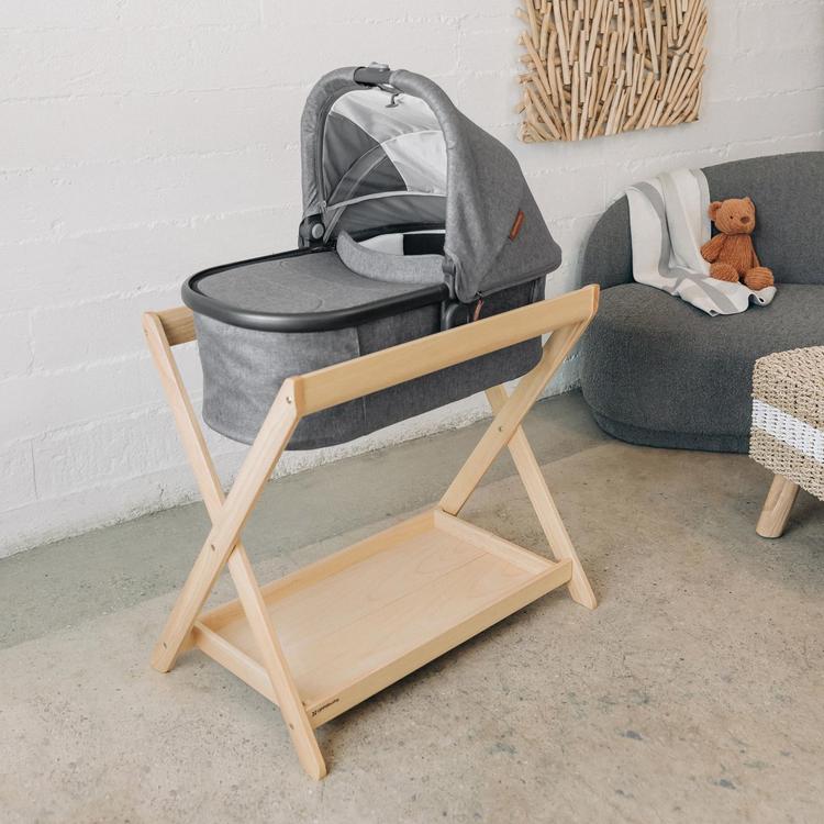 Take your Bassinet from boulevard to bedroom by snapping it into the secure and elevated Bassinet Stand. Bassinet snaps into the stand, just like the VISTA or CRUZ attachments.