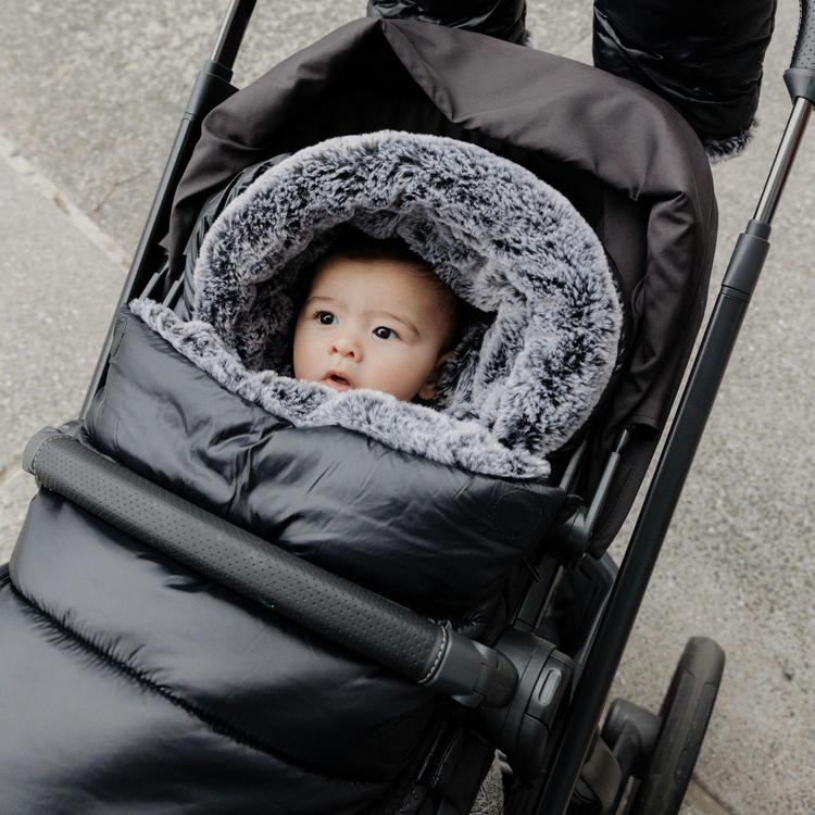The CozyGanoosh Luxe Premium Footmuff keeps your little one warm and stylish in any weather. It features an innovative zip-out liner for easy climate adjustment, with a plush fur-alternative top layer for chilly days, and a lightweight soft knit option for warmer weather.